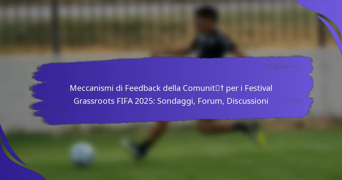 I meccanismi di feedback della comunità per i FIFA Grassroots Festivals 2025, inclusi sondaggi, forum e discussioni, sono fondamentali per raccogliere informazioni dai partecipanti. Questi strumenti consentono ai partecipanti di condividere le proprie esperienze e suggerimenti, migliorando così la pianificazione e l’esecuzione di eventi futuri. Dando priorità ai contributi della comunità, gli organizzatori possono creare ambienti inclusivi che riflettono le esigenze e le preferenze di tutti i partecipanti.